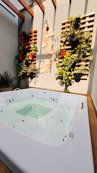 uma área gourmet elegante, com churrasqueira e hidromassagem para até 5 pessoas, ideal para transformar o dia a dia em experiência de descanso e celebração. O imóvel conta ainda com lavabo externo, área de serviço coberta com porta em alumínio preto e garagem para 2 veículos.